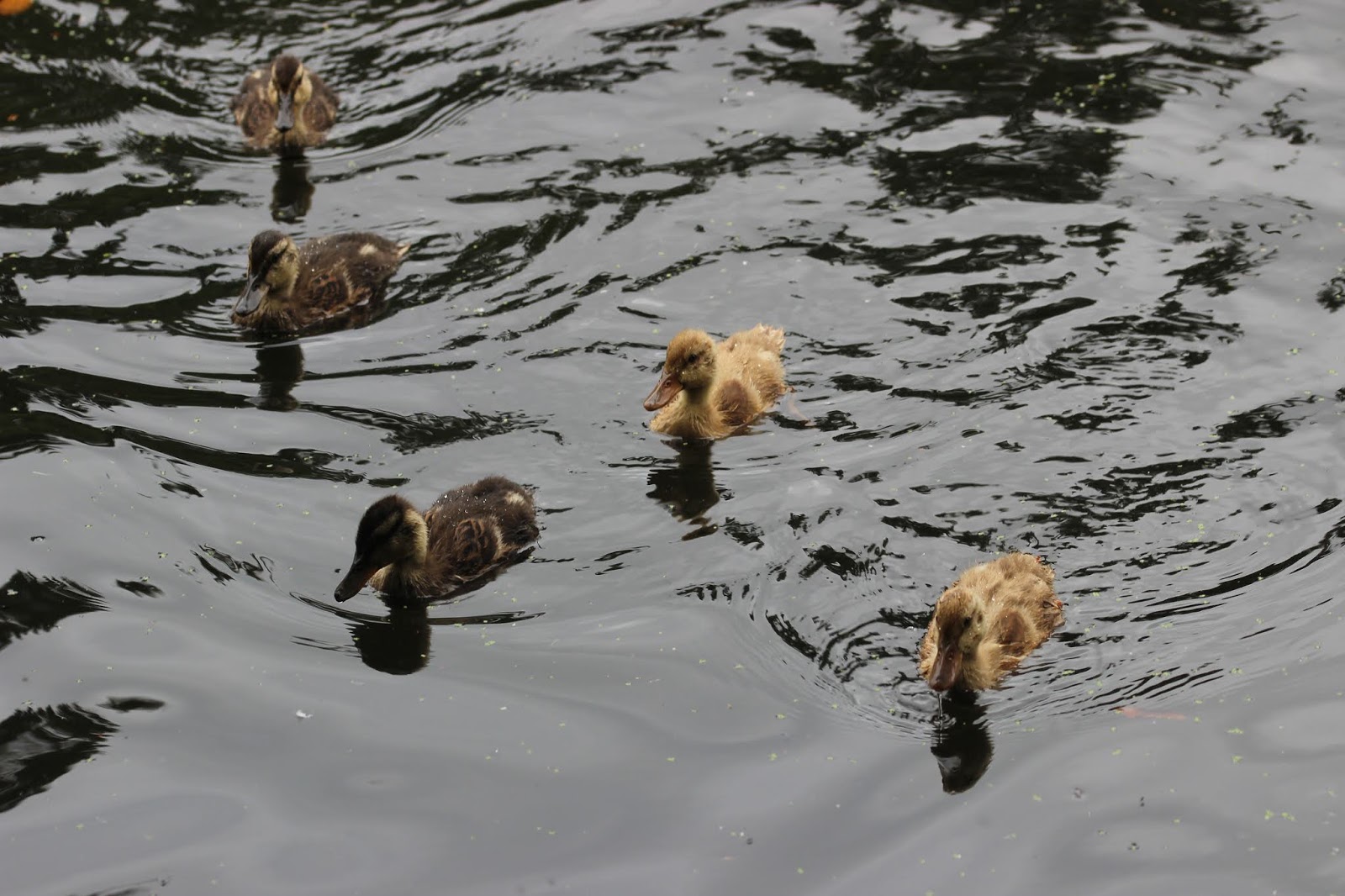 a gap in the vegetation revealed lots of baby ducks and cygnets... mum and dad being protective...