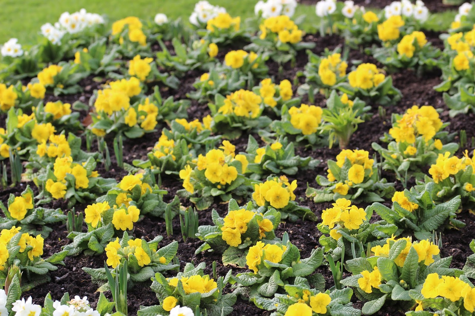 the primulas are fully out now and creating a carpet of colour in the beds at the Palm House